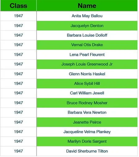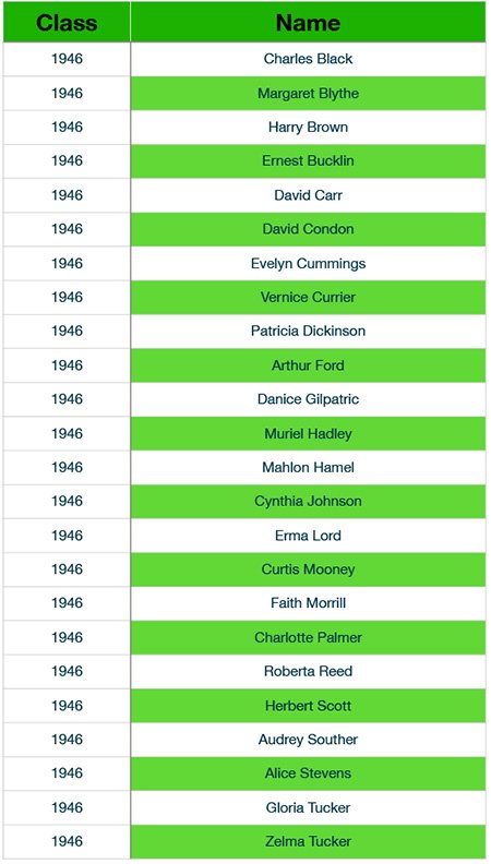 Newfound Alumni Class Listings