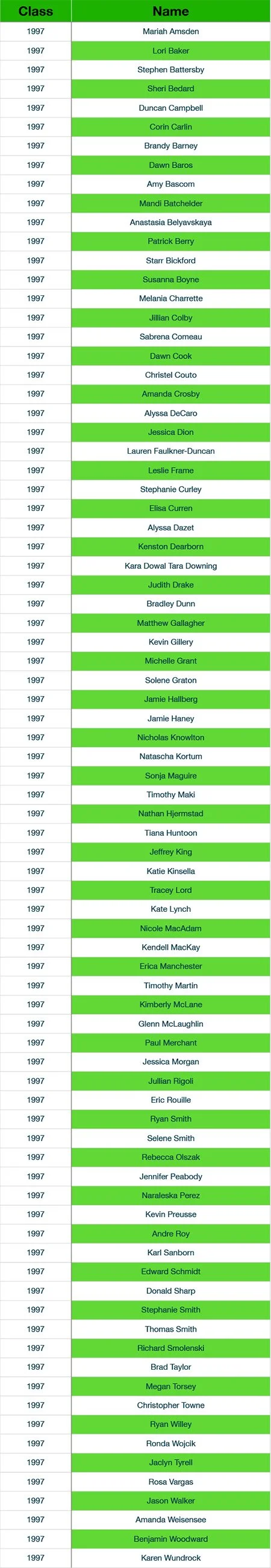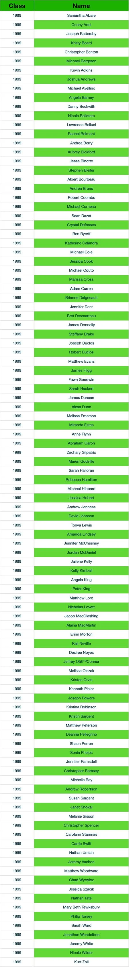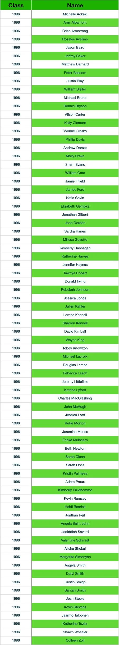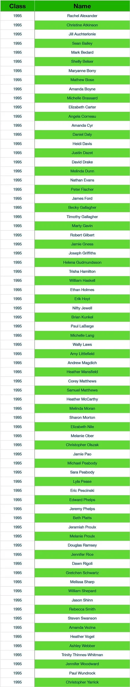 Newfound Alumni Class Listings